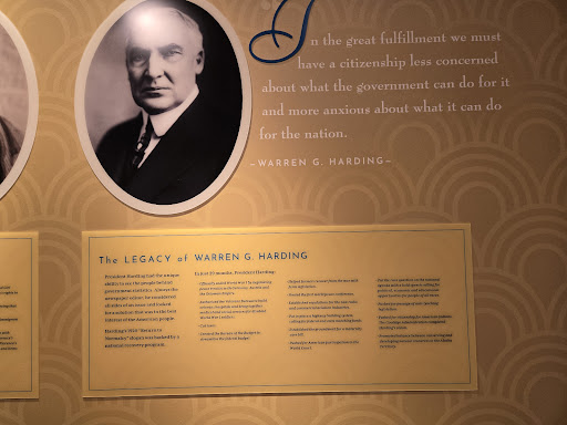 Read moreThis is an amazing find if you want to see and learn about history. When President Harding passed away, the nation at the time was in shock and grieved. Unfortunately, his presidency was not treated well as members of his cabinet were caught up in scandals after Hardings' death. It would've been interesting to see how he would've dealt with all that came out. The museum did a great job of explaining without trying to cover anything up.