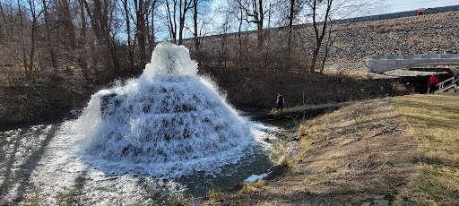 Starting off straight ahead from the parking area will lead you down a winding trail to the creek...follow the creek to a nifty water feature crated by Springton Reservoir above...