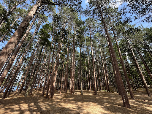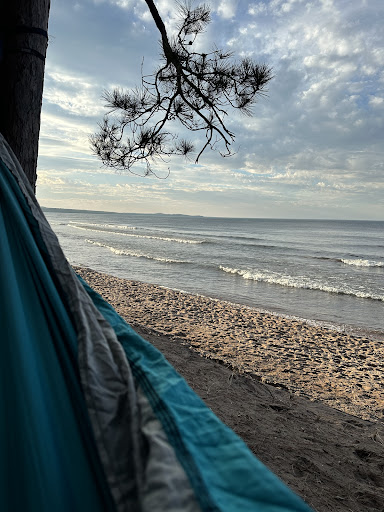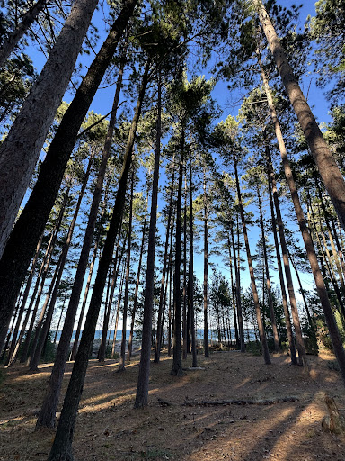 Fantastic park! Lots of big pines and a soft sand beach on one side, rock on the other. Great views of sugarloaf mountain, and Presque Isle. Dog friendly, keep them on a leash.