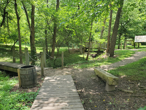 Read moreA Beautiful little park! Has an abundance of carefully maintained pathways with numerous places to rest along the way, some quaint foot bridges, a relocated log cabin that you can visit on certain days/hours...paved pathway surrounds the cabin. I do believe as nicely kept up as the pathways are...you'd be able to use an electric wheelchair fairly easily on even most of the graveled paths. Benches and covered areas to rest. A tiny stream flows through the middle of the park. Toilets are located at entry. Lots of informative markers. All of this in the center of a fairly quiet neighborhood. The only problem I can see with it is the lack of parking. This park is a pleasant way to jog, stroll or to walk your dog. There is a leash law in effect and you have to pick up after your dog does their "business ". A true delight...I almost hate to leave such a glowing review because people might want to visit and "crowd"...