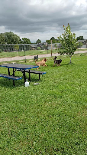 Myer and I went to this park at around 3:30-4:00pm and stayed longer than expected because it was such a nice place!! What a beautiful park!!! There are some shade trees and the park seemed to be quite poop- free, which I was impressed with! We met some really nice people and furry friends(: There was a wolf/German Shepard mix so beautiful and friendly....and than Skye showed up and Myer was in heaven 😇. Sky SO lovely and playful. They enjoyed their romp and I very much enjoyed watching them 🐶 Toys and water available for our beloved's, which is more than I can say for Wausau dog parks. I left toys ($30 ball) at Wausau dog park and it disappeared within days): it didn't surprise me at all, but I thought MAYBE it would be left there for ALL to enjoy. Anyway, beautiful park, I'm SO glad we visited. Hope to go again soon. The only thing I didn't care for was having to park on the street...although it didn't seem to be all that busy of a street so it was ok. Thank you for this VERY lovely park for our sweet babies to play...