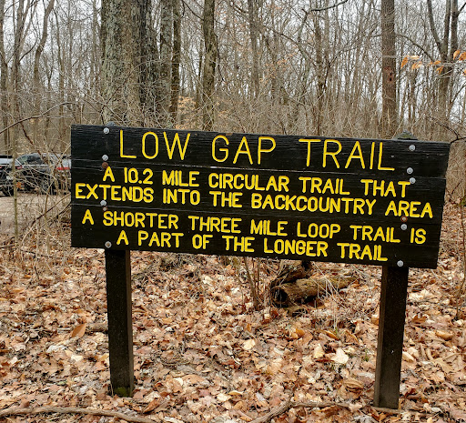 A lovely day for a hike...i hope to go back soon for the longer part of the trail...Tecumseh!! This trail Low Gap is VERY well marked and kept up. I started out thinking it was nice but a little boring.😐 All that changed as i made my way down into the holler. A little muddy with a few creek crossings. Beautiful rock formations! 😁 Two ways to enter the loop. Plenty of parking.. the main lot was full but there are 2...