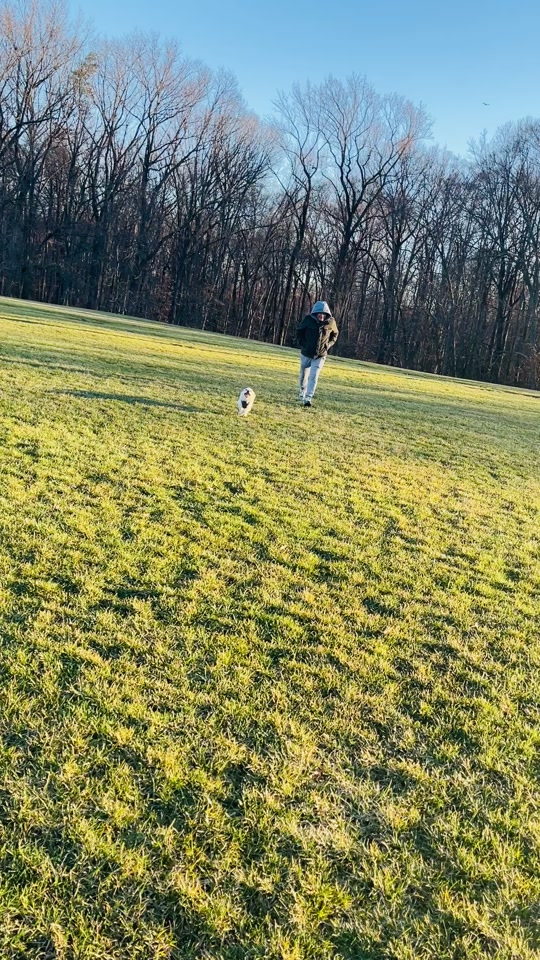 Paved path- this path is about a .7mile look according to my fitbit. The loop is pretty easy with a gradual incline. There are arrows along the walkway to guide you. This path does go onto the sidewalk and the road there can be busy so for people walking their anxious dogs: you might want to walk on the grass. Plenty of room to walk, jog, and some even bike here!