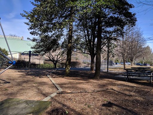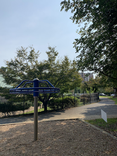 Cute little park! They share a parking lot with the aquatic center next-door. For adults they appear to have some outdoor exercise equipment and some really nice walking trails. There are also some picnic tables including one that has a permanent checkers or chess board on top of it. Just bring your own pieces!