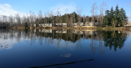 A lot of locals dont know this but these lakes are fake, man made, a cesspool of runoff, pollution & rainwater filling up two giant pits dug deep into ground to build a mountain on a floodplain to build Interstate 5 & two bridges 3-lanes each crossing over railroad tracks allready built above the floodplain and that took a lot of dirt and was expensive. To lower cost dirt was dug up right there where the two lakes are today. Ive heard 400' deep was one lake. The mound they built was gradual leading up to both bridge's & descending as well. Thats a lot of Tonka trucks the largest trucks ive ever seen then and since. Tires as tall as a house! Incredible. Built to build a freeway. Nothing had ever been attempted on such a scale since Rome built their road network. Dug in the late 60s, the pits quickly filled with water, locals liked them for the sand left behind and turned them into impromptu beaches. Kids started swimming there. The water quickly turned into a cesspool after kids swam in them go figure? They were closed but the public demanded a park. It started as a state effort to divert a stream to one lake cut a channel connecting the two then force the deepest lake to exit out into that same stream. It was hoped this would clean the lake, but it took time. It does work. Today the trees are numerous & evergreens approach at least 60 years old. A rare sight & this park is a wonderland of fakeness that demonstrates how man can do to correct damage done to environment. Trout are planted on a regular basis and no other fish has survived worth mentioning i could be wrong. I dont fish, but any time of year youll see someone there fishing. Trails encircle the lakes. A flat ez walk. Large beaches. And after reading this you will see, two box shaped lakes with a bottomless pit connected by a shallow stream? God didnt build this, Man did. No... Interstate...
