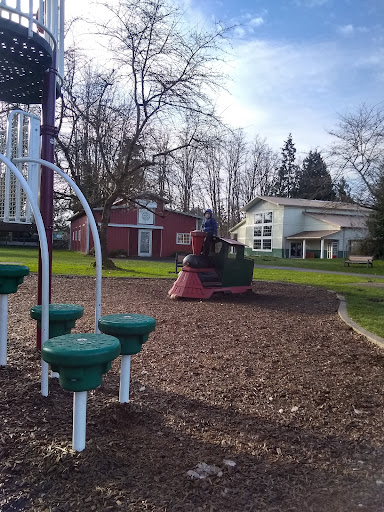 I absolutely love this giant park. It offers so much. On one side, you have a huge barn yard with bathroom access, a huge playground, a historical building where you can find information inside when it is open, and plenty of tables to sit at, some under the covered area next to the barn. There is also a gorgeous garden and flower area where you can walk through and see all the things they are growing. The trails you can walk through are so fun. You really feel like youâve driven somewhere far to get to this great place. In reality, itâs just right in the middle of Marysville. One part of the trail even takes you on a wooden little bridge over a stream area. Itâs not dangerous or deep at all. If you keep going, youâll emerge into the forest where you can get a stellar view. Iâve seen people larping (role play in costumes) in this area. The further you go, youâll find a basketball court and a giant soccer field. Thereâs a fountain where they even stock fish in and have fishing derbyâs occasionally for children! There is a trail you can take that goes behind the fountain area as well, sometimes it gets a bit muddy. The opposite side of the park boasts another giant playground area, and tons of field area which many have used for sledding during the winter months.
