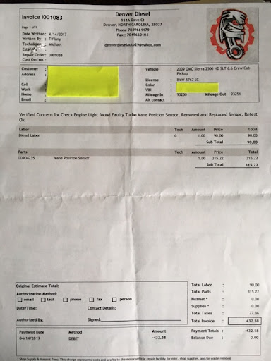 Ā Ā Ā Read moreIf I could give negative stars I would. My husband scheduled an appointment for me to take his 2009 GMC Sierra 2500 diesel truck to "Scott McCorkle's Liberty GMC". The check engine light was on and another warning would come on and off saying "reduced engine power". My husband knew it was something to do with the turbo, but it could be a number of things so he wanted it professionally diagnosed before deciding how to proceed. When I checked in they said it'd be at least 4 hours..... 45 minutes later they said I needed a new turbo, it would cost over $5,000. My husband wanted to talk to the mechanic to ask a couple questions before proceeding with such an expensive repair, the staff agreed so I didn't have to be the middle man. The conversation ended badly, the mechanic wasn't able to explain how he reached the conclusion that the turbo needed replaced besides saying "it's not spinning". There is a computer on the dash that showed the truck was getting some boost from the turbo but not as much as it should be, which proves it was spinning..... We went to "Denver Diesel" in Denver, NC for a second opinion. It was the turbo sensor, $432.58 to fix!!!!! How can a GMC dealership make a $4,500++ mistake?!?! AND if we would've had them replace the turbo it would still be giving the reduced engine power error code because the same bad sensor would STILL BE THERE. I will say that during the one hour I spent at GMC the staff was nice to me, and they didn't end up charging the $100-ish for diagnosis, BUT no amount of niceness can compensate for trying to overcharge me THOUSANDS of dollars. I don't know if it was intentional or not, either way it's still horrible. How many people have been screwed over by them because they don't take the time to educate themselves about their vehicles or get...