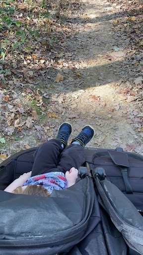 We had thought we would make it to the park but short legs get tired quickly. I attempted to take a stroller on the trail 🤪 but there are too many roots to make that a good idea. We turned around before we got close to the actual park which disappointed the kids.