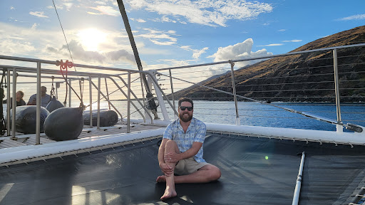 Read moreWhat an experience! We decided to book the Adult Only Sunset Cruise for our last night on our honeymoon and the crew at Alli Nui did not disappoint! We used the shuttle service to pick us up from our hotel, which was very convenient and a great perk that comes with ticket purchase. You take your shoes off once you get on board and spend the whole time barefoot. The catamaran had more than enough seating, both tables for everyone at dinner and seating up top during the cruise itself for viewing. You get to meet some pretty awesome other guests on board too and their stories of why they are in Maui. The bathrooms on board weren’t bad, they had separate mens and womens, just don’t flush the toilet paper and place in it the trash! It’s a quick cruise over to the landing spot where they anchor down for dinner. The crew on board was so professional and genuinely enjoyed this job to maintain the catamaran and serve us. Some of the crew even went around asking folks if they wanted pictures taken of them (using our own phones) which was super nice of them to offer. It does get very windy, so prepare as needed! I had my hair down at first and ended up braiding it quick to stop it from flying everywhere. I also recommend sunglasses of course until sunset. One of the workers even went around with a microfiber cloth asking if they wanted their sunglasses cleaned quick to view everything better! They have a specialty drink that I highly recommend and was the only drink I had all night, the Slip 56! (I hope I got that name right 😊 ). The dinner buffet spread was absolutely perfect, check out the menu on their site! There was plenty of food for everyone on board (about ~25 people), we were even able to go up for seconds! We were lucky enough to have the most beautiful sunset that night. The whole cruise was such a blast that I couldn’t believe how fast 2.5 hours went. Highly recommend for couples!! We will be back on our next Maui trip! Thank you Alii Nui for...