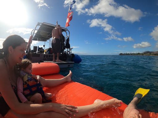 We chose Blue Maui over others because itis advertised “This adventure features our exclusive Blue Water Maui Floating Island for lounging, playing or drift snorkeling!” However there was no drift snorkeling, even when requested. In fact, when our kids wanted to use the pad, it was being used by divers and we were told to wait.