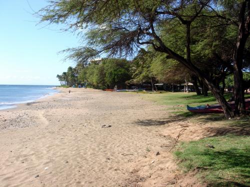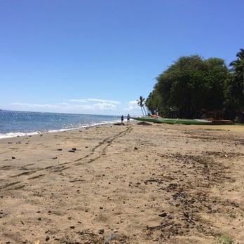 THE BEACH: The view of Lanai is front and center. The beach and ocean floor are full of swirling river rocks and broken kukui nuts due to the river mouth that empties into the ocean nearby. Wade in the water and your feet will be banged up and bruised. Snorkeling is excellent due to the shallow reefs. Sunsets are gorgeous.