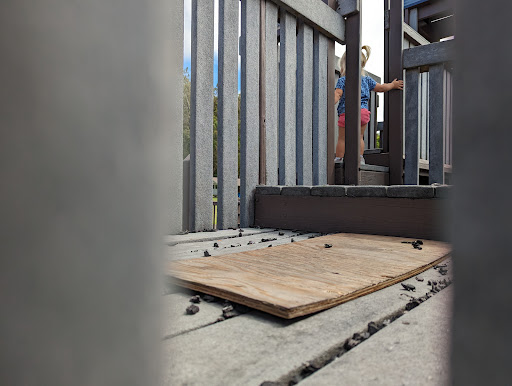 The Kalakupua Playground is really well-taken care of by the neighborhood. Hardly any grafitti, only one tiny area is broken (but it's taped off), and it's very safe - as the entire ground is covered in cut up pieces of tires. There are swing sets on both sides of the playground - and safe toddler swing sets, too. Climbing choices galore, many slides to choose from, a great parkour for kids area, and even a tiered sitting area for parents to wait while their children roam free in the safe, fence-surrounded playground.