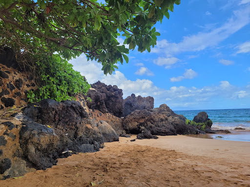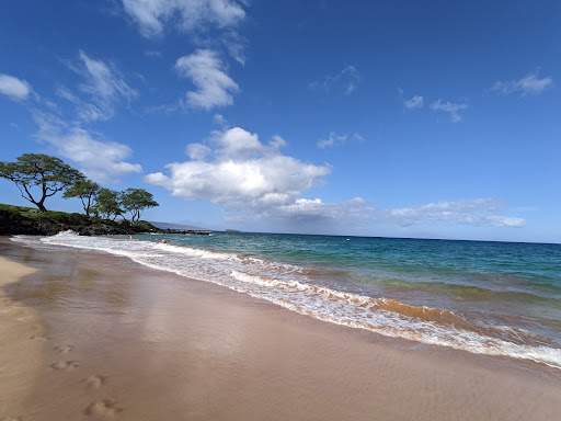 Quiet beach mostly used by the hotels in the south. The large catamaran comes in for the tourists here. Parking is about 100 meters from the beach drop off. In the parking lot are bathrooms and showers. Over the small berm you will find a long beautiful beach. The snorkeling isnt great but the water had a smooth entry and the waves can be large enough for good body or boogy boarding. There aren't any restaurants or cafes bear by but there are food trucks about a 4 minute drive from the beach towards Makena. Door dash does deliver...