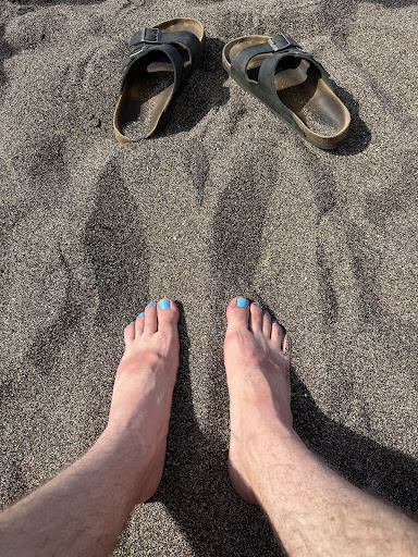 Awesome black sand beach! It’s the northern most beach of the Makena Beach park- but it’s separated from the other beaches in the park (Big and Little) by the tall cinder point so this beach was less populated. Unlike its sister beaches, this one has a rocky entry rather than a pure and soft sand entry. It looks daunting at first, but we watched some locals entering to spearfish and followed their lead: there is a mostly smooth and sandy channel if you head straight in from the parking lot. Once the water is above your knees, put on your mask and fins and simply float/swim out.