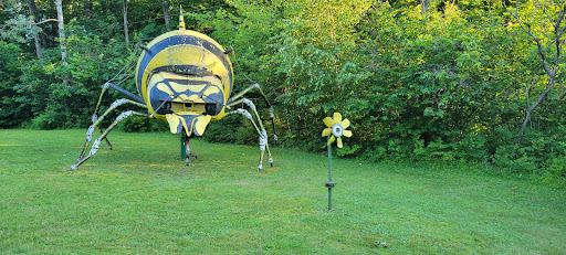 Its 11 mins from my camp....worth the stop! I will say, I am afraid of big dogs, had my own small dog with me and when we got closer to the house to look at artworks, turned around and saw their dog...which, scared me, so we ran! Their dog looks like lassie, very quiet, very friendly! Just caught me off guard as I wasnt expecting to see a loose dog so I did panic a bit! So, if you are afraid of dogs...be aware there is a dog on site, their dog is harmless though! Didn't even bark! Or get too close! Or even try to follow us. Very good, friendly dog!