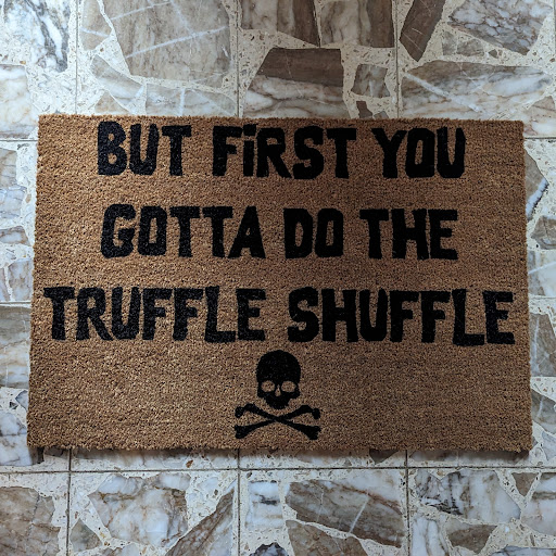 I was invited as a guest and got to choose my project and (me being me) really wanted a custom quote on my doormat project. I figured if they could do it, great, but didn't hold my breath for it and it would have been just as fine and fun if they hadn't been able to accommodate. But they really came through! The stencil they made from my request was exactly what I was hoping for and the end product makes me smile multiple times a day when I see and use it.