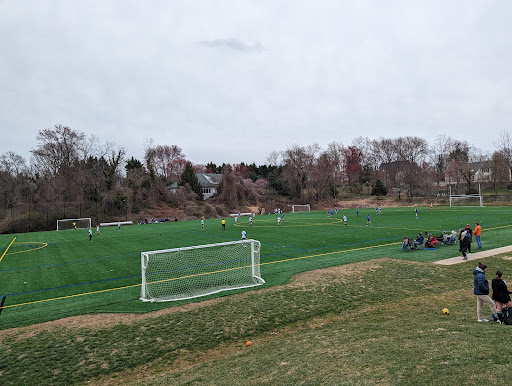 A very nice turf field. The rubber isn't worn so it plays very fast. it's shaped so it has one long field or two smaller fields for the little kids. Goals are sunk into the ground. It also has a basketball court. Small bleachers are nice so you don't have to...