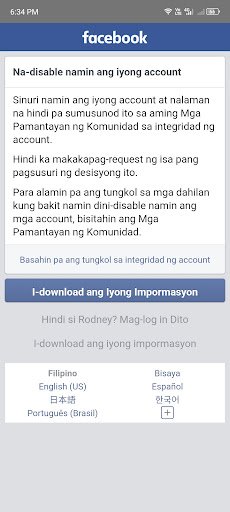 Hello, I am writing this to appeal the sudden disabling of my Facebook accounts. The affected accounts are: Facebook name: Rodney G.Barameda Email linked to the accounts: I believe that this may have been all a misunderstanding. I did not violate any of the community guidelines or any violations that go against your terms and conditions. These accounts were made a long time ago until now being used for personal/work/business/ and school purposes. I have always followed the terms and conditions of this platform and do not engage in any violations, that’s why this is so alarming for us users that we got to experience such a tragedy that affected us so much. This incident really causes us mentally and physical stress, not only it affects our work, studies, but also affects our business operations especially when we rely on this platform. I hope to receive a good response and solution on this matter because this incident really bothers us and gives us anxiety and depression since we might have lost everything we built on this platform. I would respectfully request a review of my accounts and would gladly provide any additional information or identification needed to verify my identity and ownership of these accounts. I believe you could give us a good response and a quick action regarding this matter. Thankyou for your time and understanding. I hope for a...