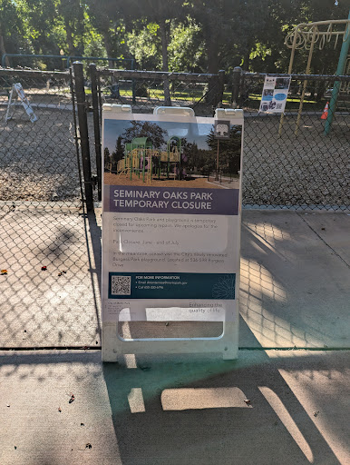 Update 2024-09-10 The park reopened in August. However, instead of replacing the damaged parts of the play structures, they were removed entirely, so there are no big slides anymore. Very few kids play here now. Most families have moved to play at Willow Oaks Playground, which is about 5 minutes walk from Seminary...