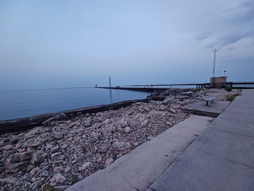 I have been going here my entire life. Every season is different and even every day. The winds change fast, and bugs come and go. I always bring an extra layer to put on as it is a bit cooler on the water. The lighthouse does have tours, but be sure to check the days/times those are available. It was a nice tour with photos and the opportunity to walk up to the top to lookout, great views. This is a great place to fish and also a fun place to jump off. We go pier jumping every summer as a big group, and this is our go-to spot. We do jup off the side where the boats drive because it is much safer and no rocks. The water level fluctuates yearly, so be ready for a variety. Keep coming back to see the changes. There was a freezing day one time and crazy wind and waves that coated everything around in ice. It...