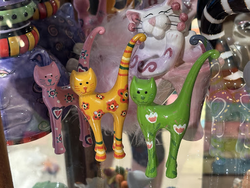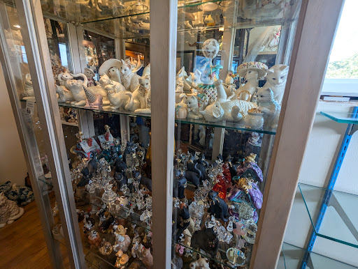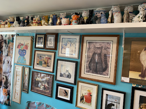 This is way more than just a beautiful collection of cat art, figurines and everything else you can possibly imagine. What was especially touching, was hearing how each and every item had a story. It resonated with me personally after recently losing my mother who had a 50 year collection of her own. I couldn't bear to drop it at thrift store where I know items could get broken or damaged knowing how much she treasured them. Instead, we loaded up 20 large totes and trekked them with us 2000 miles when we moved this summer just to ensure I have the time to ensure they end up somewhere they will be treasured. Enough of my story... Beyond the the kindness that they show the people that loved these artifacts, they also use this passion as a CATalyst to give back to cats in need by supporting a variety of local kitty focused charities. Keep going, what...