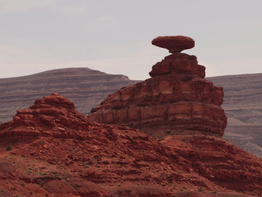 There is an interesting land formation 2.5 miles north of the town of Mexican Hat along Highway 163. Here you can see what appears to be a sombrero shaped mountain a few hundred meters off the east side of the road.