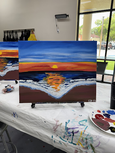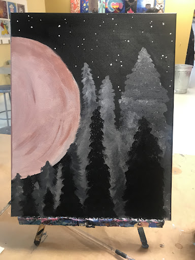 I had such a fun night with my best friend! We really enjoyed and got to relax while painting. This location was easy to find and loads of parking was available. Our painting instructor, Almond, was super sweet, talented, and down to earth. Her music selection was awesome! We felt like we needed just a tad bit more guidance or instructions while painting. Overall, she was cool and we loved how our painting turned out to be. It would be great if the company provides to their clients a variety of brush options so that we can be more detailed with our work. The staff was friendly. The experience was nice. I would return for another...
