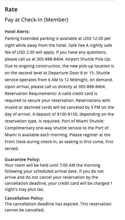 Full version: Our flight into Miami arrived at about 9 AM the day before our cruise departed. In order to avoid the long wait in the lobby for the standard check in time, I reserved and prepaid our room for both the day before and the day of our stay. Quick and easy check in was the name of the game. If only...