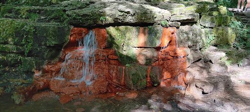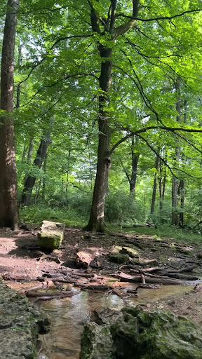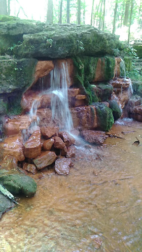 Yellow Springs has natural trails with some descending concrete stairs as one leaves the parking area that have no hand rails. This poses a fall risk for anyone, especially young children or the elderly. Handicap access is limited. Trails vary from wet and boggy, to natural dirt surfaces that cross creeks, waterfalls, ascend hills, and immerse visitors in the shadows of old growth hardwoods and large Limestone formations. There is a small Native Adena Burial Mound, and ultimately the Historic Yellow Spring with water bursting forth from a huge rock as it has for more than a century. If you should consider drinking some of the natural mineralized spring water, I recommend using a filtration device like a Life Straw, just to be safe.