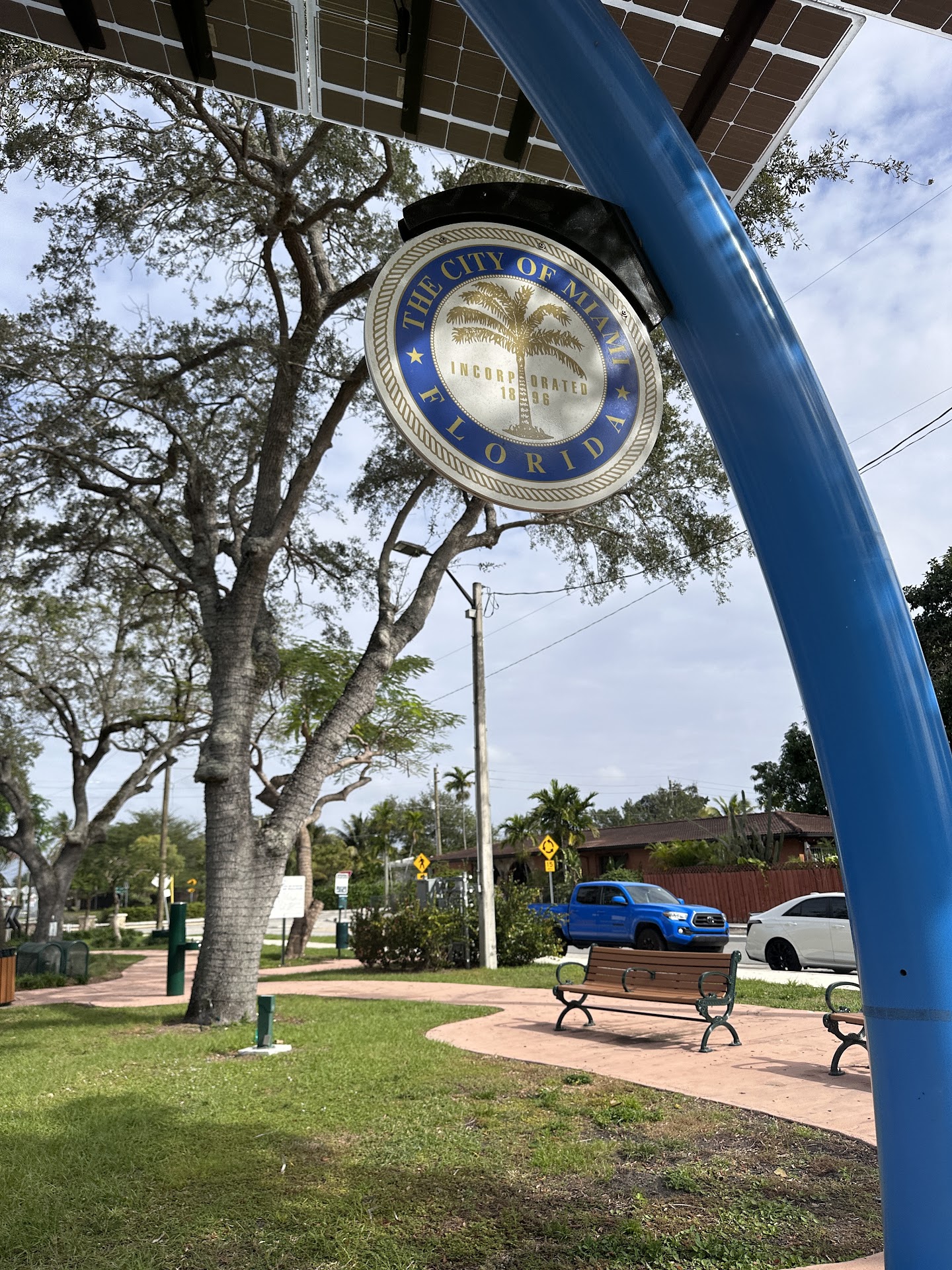 Very peaceful during the mornings. People you meet are friendly. Most keep to themselves and are polite with greetings. It's small but perfect, all the better to keep an eye on your child(s). If you need to charge any electronics for example your cell, there are 4 outlets two on each solar panel blue pole with a small bench to sit sat while it charges. (Newly installed). I love bringing my daughter here. First thing she loves is the swings. 2 toddler swings and 2 for much older kids. And there's a smaller double slide for toddlers as well. Love the mat cushion on the playground, keeps them from seriously getting hurt. I cant tell you the amount of time my little one has fallen and gotten right back. Hope to have been...