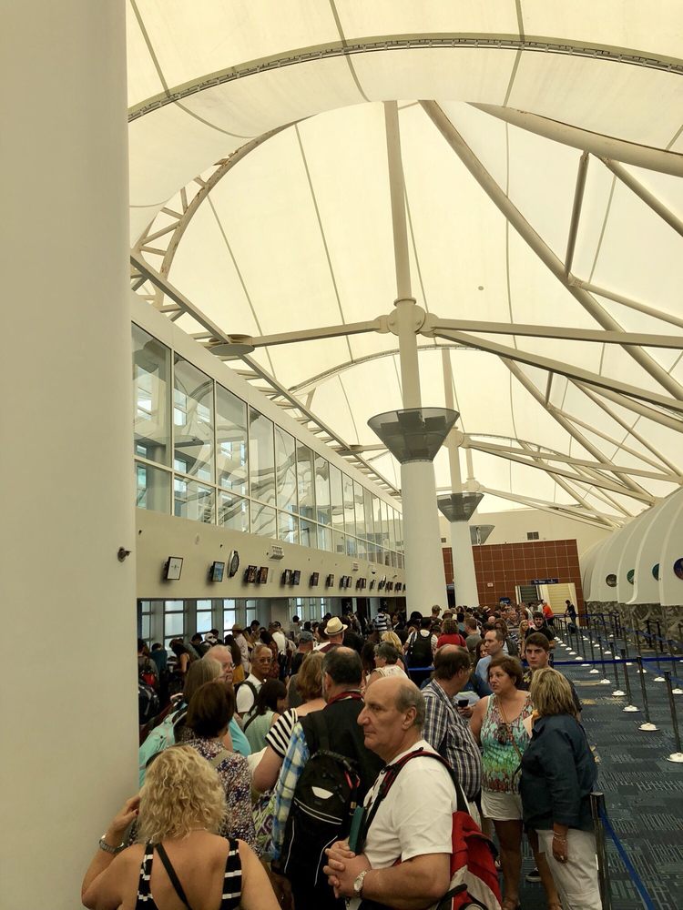 Head into the designated terminal where your ticket and passport gets checked. Security is next, which flows much faster than TSA. Then comes the check-in for your cruise. For Celebrity, there were different queue lines for specific classes which took maybe 20 minutes from line to boarding. After this, head up the gangway to your ship!