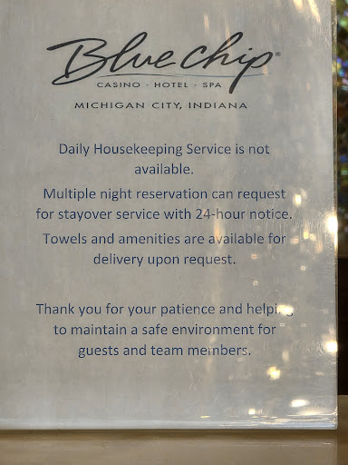 Update: Due to the terrible way I was treated at check-in by the front desk manager, I have lowered my rating to 2 stars. I will not be back anytime soon. No one should have to put up with that kind of experience I endured at check-in. Totally unprofessional from the management, no less. The room was decent and the rest of the hotel, its grounds, the parking structure and casino area were good. The pool was loud, water was dirty and it was incredibly hot and humid. Couldn't wait to get out of there after 15 minutes. Also, it is very difficult to get to the pool area from the Blu Spa Tower. A lot of walking through a labyrinth of halls, cubby type areas, elevators and a filthy basement with dangerous wet tile floors where the pool and exercise area is located. Best to skip the pool, entirely. First time in Indiana and I was pleasantly surprised when I heard that there was a casino in Michigan City. So, I stopped in to check it out. Very nice and convenient location. I felt safe going there both at night and during the day. Parking was plentiful and had option for garage parking, valet or out in the open. Chose open area for parking and walked a short distance to the entrance. Very Vegas like and I was impressed. It is bright, full of the newest slot machines and it wasn't crowded. Stopped by to get my membership for the Player's Card Club. The representative was very nice and knowledgeable. Less than 10 minutes signing up and was off to play the slots. So many games to choose from. Older games, newer games and everything in between. Many gaming tables, too. Multiple beverage stations available. Clean restrooms. Temperature in casino was slightly chilly, but not as cold as Four Winds in New Buffalo, MI. As for the slot games, they have many different Buffalo slot varieties, some I never heard of. My recent visit to Las Vegas didn't have the newest games, yet this casino did. Happy for that. Winning payouts were quite frequent for me and others. I was able to play a long time without losing very much. I definitely appreciate that. If there were any issues with my visit, it was the flooring at the front entrance of the casino. There is a steep ramp and it is very hard not to trip over it, fall and roll. While signs and different colored carpet somewhat help people to notice this hazard, it doesn't work well enough. I saw many, many people have near accidents, including myself and family members of all ages. It is a major hazard for any age or physical disability. It's NOT a good way to start your casino experience at Blue Chip. The other issue is the security gate that checks ID and such. While all casinos have these gates, Blue Chip has them AFTER the restaurants. Having them this way isn't very smart or practical. It's a nuisance. With all other casinos, these security check gates are at the front doors, not AFTER the lobby and restaurant area. This way, if you buy drinks at a restaurant, you are already through the security check. After purchasing a soft drink and a coffee at Blue Chip's Deli which is before the security gate, I was told I couldn't bring it through the security, even though security watched me buy the coffee. I had to drink it in the lobby or outdoors. Dumbest thing I have ever seen at any casino I've been to in my lifetime. Put the security gates at the front doors BEFORE the restaurants and main casino floor. All and all, though, this casino was a surprise and a pleasant one. While I like Four Winds, it's nice to see other places offer the casino experience. I'll be back soon, however, with no restaurant drinks purchased before the security gate. ...and watch out for that...