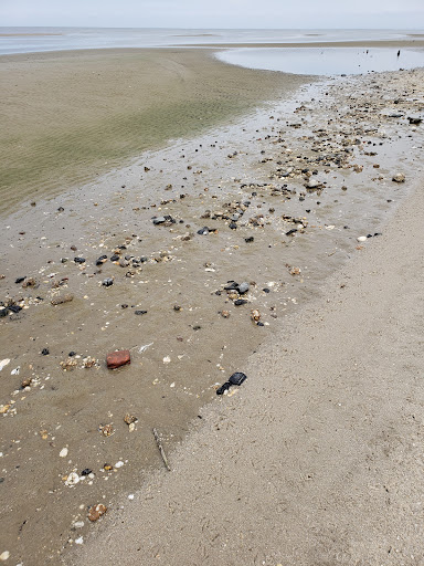Empty beach, which was great, but the flies and smell drove us away after a short time there. There is a lot of construction debris in the water and on the beach (rebar, old rusty pipes, bricks, etc.) So be careful when walking. The shells were similar to other bay side Cape...