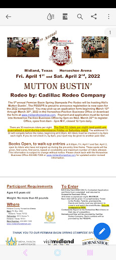 Read moreWe entered our child into the Mutton Bustin event for 4/2/22 with the understand he may ride BEFORE or during the Rodeo itself. I received a call about 1.5 hours before we were supposed to be there informing me he would ride at 6:30 pm. We arrived on time, checked in, waited. 6:30 pm arrives and nothin is called. My husband noticed the program said 6:45 pm. We waited again, 6:45pm arrives and NOTHING. Finally, they call for Mutton Bustin riders after several events. We lined up then were told we wouldn't ride until AFTER the rodeo itself. The coordination and communication (or lack there of) is completely off putting. I understand sometimes things run late or change due to whatever the circumstance but I feel like they could have given the parent of riders 17-30 a heads up that they would be delayed at the very least 3 or so hours. Highly upset with how poorly things were...