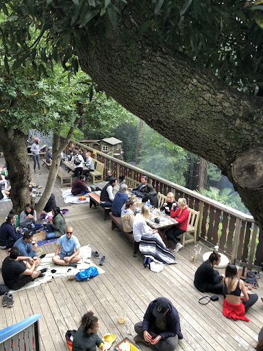 This is a hidden gem! Lovely place nested in the middle of the Muir Woods! There's an easy hike (0.8 miles / flat / gravel) with beautiful views to get there, the place offers board games, good beers, snacks and a nice patio! Everything is CASH ONLY, there's no ATM around.