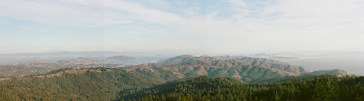 The view of the Bay from Old Mine near the Mountain Theater is the best in the area, in my view — it's like looking at a topographic map of the region. On your right, Ocean Beach stretches diagonally, where city meets ocean. Down the center, peeking out from the rolling hills of Marin — 70% of which are protected green space — is the top of the Golden Gate Bridge. In the east, downtown San Francisco gives way to the East Bay and its towering Mt. Diablo in the distance. There's no better place for a visual...
