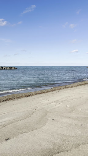 Large beach and quiet. We went on a Saturday morning and there was barely anyone. I had my dog so we went to the unguarded area but the guarded area was closed to swimming anyways. I think life guards are not always on duty. The shore is pretty much pebbles and can hurt the feet but a few feet into the water is mostly sand. We loved the beach overall but we didn't stay long because we were attacked by black flies whose bite hurts! My poor dog has at least a dozen on him at all times and they were driving him crazy. I also didn't love that 4 larger boats anchored a few feet from the shore and had jet skis. Not only the noise but also the gas wasn't great.