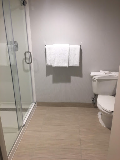 The room was kind of small. For the price you pay it would've been nice if it was a bigger room. The bathroom was big though. The shower could've been wider. It was long but felt cramped. My elbows bumped into the wall and the glass sliding door.