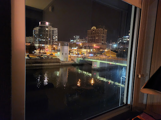 Read moreMore like a 4.5 as this hotel was great, beautiful front lobby/entrance with friendly staff, valet parking, games and pool table, fireplace with lounge area, a pool, grab and go food and drinks, coffee area, meeting rooms and more. We reserved online and had zero hassle checking in, went up to our room located on the 3rd floor overlooking the deer district (we were only staying 1 night so room view wasn't a concern for us, while they do have rooms overlooking water for the view) and found a very comfortable bed, clean room, TV, bathroom with perfect sized shower, safe, and mini fridge. The setup was basic but easy to get around, and the decor was simple yet added a nice touch to the room. Very loud at night and early morning with construction, woke us up, BUT ... They have a sign right next to the bed if the loud noise from the traffic and location are hindering sleep to call the front desk to help with options. We didn't do that, not sure if they could relocate you or offer ear plugs but that's an option. We went to the bucks game and walked back to the hotel to a secure entrance after a certain time where you need a key to enter which was nice. Again, bed was very comfy and perfect amount of pillows, we did get some food from the little area downstairs, had a wrap and some chips which were really good and fresh. We were able to check in early and check out was 11 am which was ample time to get everything ready even sleep in a bit. For the room I only gave 4 stars because it was a little small and the heating/cooling was a little loud I had to turn it off. The hotel is smoke free which was really nice, the room was very clean, not sure if on purpose but there were no bags in the trash cans- I don't mind because I figure it's more environmentally friendly. Service from everyone we interacted with was amazing- the 2 ladies at check in were incredibly friendly, the gentleman during the overnight shift was really nice and that's when we got some food so he had to ring that up, and checking out was easy and fast with the friendly morning staff. For location it was really convenient for us to go to the bucks game, but for others it might be a negative being downtown and can get loud late and very early with local construction.