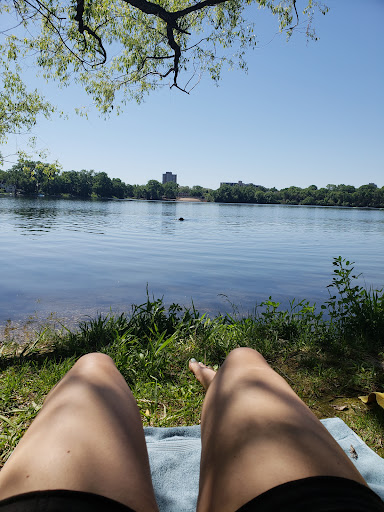 There is a restaurant over where you can grab some food and sit facing the lake. You need to find parking on the street. There are plenty of restaurants around here and close to uptown Minneapolis.