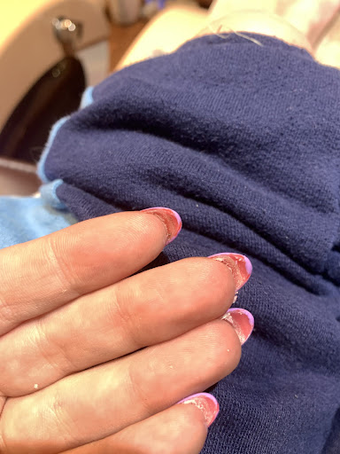 I went in with gel x extensions on with gel dip/powder, asking for a color change (I had bright orange on my nails, and now wanted light purple). The man doing my nails was clearly rushed as soon as I walked in, and gave me very limited polish options. He insisted that I pick a color dark enough to go over my orange, but at the time I didn’t quite understand what he meant by that. He quickly did my manicure, and I’m not kidding- didn’t even remove my orange polish. He layered purple gel polish over the lightly buffed orange and that was it. You could see the orange underneath my nails, and even on top of some of them. The customer next to me even asked “They’re painting over your old color? I’ve never seen that.” to which I agreed, and both nearby workers ignored us. The worst part was how thick and unnatural they looked. My hands were filthy from the UV light machine, and the underneath of my nails was a disaster. There was also polish all over my fingers, and with the price it left me wanting to cry. II had a pedicure immediately after with a woman, who did a wonderful job. My toes came out great and it was very relaxing. I decided to show her my nails, and she immediately confirmed that they weren’t done properly and offered to fix them. I was relieved! But it didn’t last long.