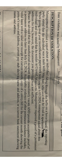 Photo of the violation added… Also, I’m curious as to how she can tell me who I can and can’t have in my apartment? He watches my kids while I am at work and now you’re telling me that he can’t do this? Is this not disrupting my job? After looking over the old handbook and if all of this situations except for 7/7/24, happened before I signed my new lease and there was nothing about motorized toys in there, how is there a violation if it has not happened again?