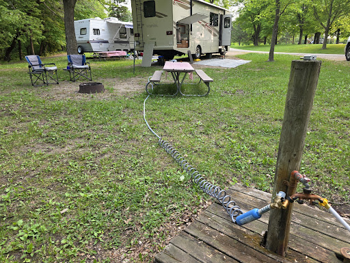 Read moreLet's start with the positives. Overall the park is really pretty. Lots of green areas and easy, walkable trails. The lake is beautiful but very busy with skiers. The beach looks lovely (though we haven't visited yet). Lots of birds singing, squirrels foraging, even saw a bald eagle fly just a few feet above our heads. Now for the not so good. The bathhouse is pretty dated and poorly lit. When we arrived there was no TP in either of the women's stalls but the caretaker fixed that as soon as I let him know. We booked site 15 which was listed as a back-in site for RVs/MHs with electric and water. However, the site itself is so poorly graded that's there's no way of leveling a MH on it. It's like they dumped a bunch of class 5 but forgot to spread it out. The water spigot is over by site 14, so you have to run your water hose through your campsite to connect to your camper. The site does back up to the lake and has some nice trees for shade so that's good. The caretaker was terrific though he couldn't change us to a different site because the grounds were fully booked. If we weren't traveling with friends we would have broke camp, ate the reservation costs, and headed back home. The net of this review is that the campground is nice but avoid site 15 unless...