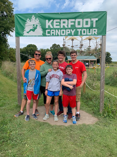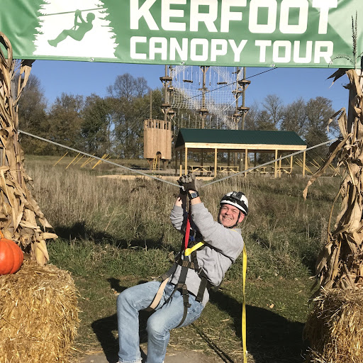 This was my first shot at ziplining and it turned out to be a perfect first experience, which a mid-70's degree day and Minnesota showing all her blazing Fall colors. It would be tough to beat the scenery that we got to experience today. From the time we were fitted with our harnesses and helmets until my feet hit the ground after the final ride, it was a total of 3 hours. Our group ended up being 11 people plus our two guides, Trevor and Jesse. Both men were very friendly and kept up the conversations throughout the tour. They answered all questions and added both their own perspectives on the various rides as well as a narrative on the Minnesota River land that Kerfoot is on. Very interesting to hear. We started with gearing up and then a short trip by ATV up to the first two rides, which made up our Ground School training. Very thorough, informative, and helpful. It made the handbraking technique very easy to understand as well as a chance to practice it. Safety is definitely front and center throughout the entire experience, and as someone with terrible fear of heights and some other anxieties, I felt completely at ease throughout the entire day, even though that sense of adventure and the adrenaline rush was certainly real. I paid the extra $30 to rent a GoPro from them to wear on my helmet and about halfway through the battery glitched a bit. They radioed down to the office to have them drive up with another battery so I could still get footage of all my rides. One other thing that was really nice was that our group had people aged probably from late elementary school/junior high school up through a retired couple, yet the guides seemed at ease with everyone and made it easy for all of us to interact and find some common grounds as a group. All in all, today was a fantastic time and I would recommend Kerfoot to anyone. ...