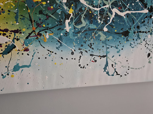Long story short, his conclusion was the wrinkles/waves were likely due to 2 reasons. Primarily, the thick paint on the canvas and the technique used by the artist prevented the canvas from being fully stretched. Secondarily, there may have been further loosening of the canvas during my transport of the canvas. For the first reason, I contacted the artist and she stated the paint thickness is absolutely not the cause because she uses high quality flexible paint and no other customer ever had this problem. She also stated she stretches canvases herself and that its clear the canvas needs to be restretched and is not fully stretched. She said she can easily fix the problem, but unfortunately is not local. For the second reason related to transport, Mark repeatedly mentioned how I transported the canvas in the back of a pick up truck was not a good idea may have loosened this stretch. He did so even after I clarified 3 times this is not the case. The canvas that turned out perfectly was transported in the pick up truck because its dimensions were 60x60 and did not fit in a vehicle, but the canvas that did not turn out was transported flat in the back of an SUV with its seats down because its dimensions are 72x30. Finally, he did apologize saying he forgot that detail, but then went on to say maybe its because I put blankets over top of the canvas. I never did this either. I am completely confident we did not loosen to the stretch with transport. The one mistake I made is the canvas was wrapped in plastic when we picked it up and hard to visualize. I should have inspected it very closely before leaving with it, but to be fair, the waves in the canvas can only be seen under uneven lighting conditions and his studio is very well lit.