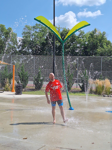 There is a splash pad right by it. It has a Spinny squirting thing and a Spinny butterfly thing that shoots water out of its mouth. It also has some river type things that fill up as water squirts in it. There is a covered pavilion with a picnic table or two right next to the splash pad.