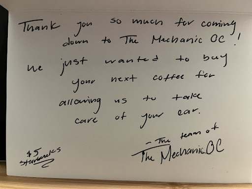 Read moreFollow up review for December 2023 service: I absolutely love everyone that I've encountered at The Mechanic OC. Nestor and Diana are absolute angels. They truly care about the needs and concerns of their customers and have exceeded, by far, my expectations of what exceptional customer service is like. I have never met such kind, caring, honest, and trustworthy mechanics and administrative staff in my life. I have been having oil consumption issues with my Kia Soul and Nestor and Diana went out of their way to take my car into a Kia dealership to try and speak with the manager or person in charge to resolve the manufacturer issue and to have it covered under warranty. The fact that they did all of that out of the goodness of their heart to fight for me and my car issue with the dealership shows what amazing and beautiful souls they are. I'm so grateful and appreciative of their genuine kindness. The world needs more people like Nestor and Diana. I will continue to get my car serviced here, even after I move on from the Kia Soul.