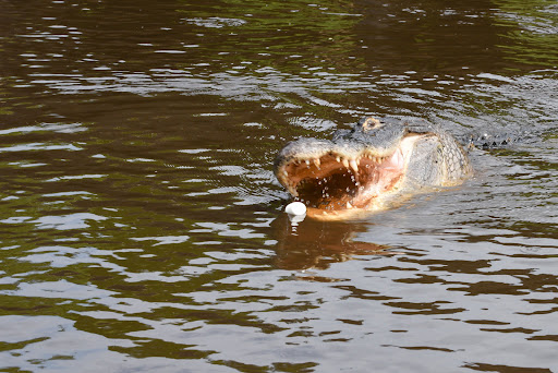Not sure that marshmallows are nutritious alligator food, but Captain Frog tossed one if the water and the gator didn't hesitate to gobble it down.