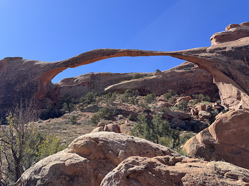 This 1.9-mile out-and-back trail is considered an easy route, taking approximately 50 minutes to complete, but we recommend taking it slower to enjoy the view. The trail begins at the Devil’s Garden Parking Lot. You will be following the Devil’s Garden Trail for most of the way until it splits within 0.25 miles from the viewpoint. This happens to be one of the most traveled trails, so it is always best to get here early to void the crowd and no dogs...