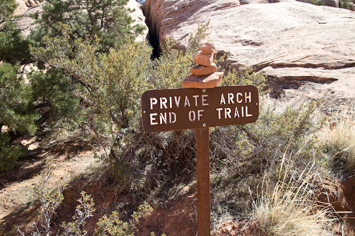 Private Arch is a very apropos name, considering this was far and away the least crowded arch I saw in the entire park (full disclosure: I never made it to Tower Arch). The fact that this arch is found on the Primitive Trail rather than the Devil's Garden Route means that the only people visiting this spot are seasoned hikers trying to tackle the Devil's Garden/Primitive Trail Loop, so you'll be treated to much smaller crowds (there was no one there when I visited) and a low likelihood of selfie sticks and people taking hundreds of pictures of themselves standing inside the arch. Worth a quick stop if you're trying to...